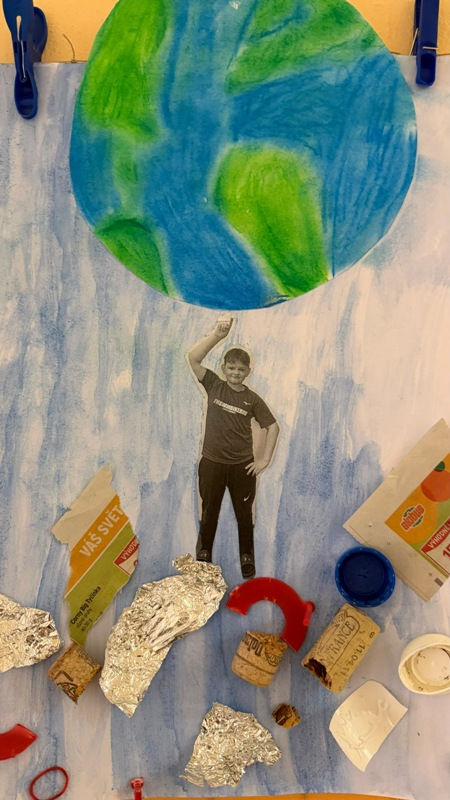 Žáci pracovali s různými druhy obalů, víček, papíru, provázků i dalších drobných zbytkových materiálů, které zakomponovali do svých obrázků. Vznikla tak působivá výtvarná díla, jež připomínají, že naše planeta je krásná, ale zároveň křehká a potřebuje naši péči.